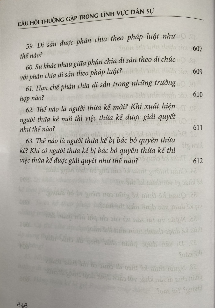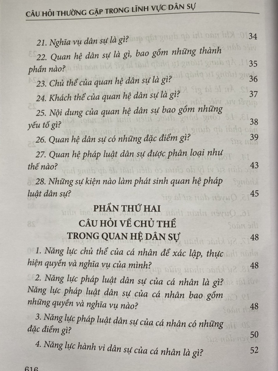 Để thuận tiện cho người đọc trong việc tra cứu, tham khảo các điều luật liên quan đến vấn đề đang tìm hiểu, chúng tôi sắp xếp các câu hỏi theo thứ tự cơ bản tương ứng với kết cấu của Bộ luật dân sự năm 2015.