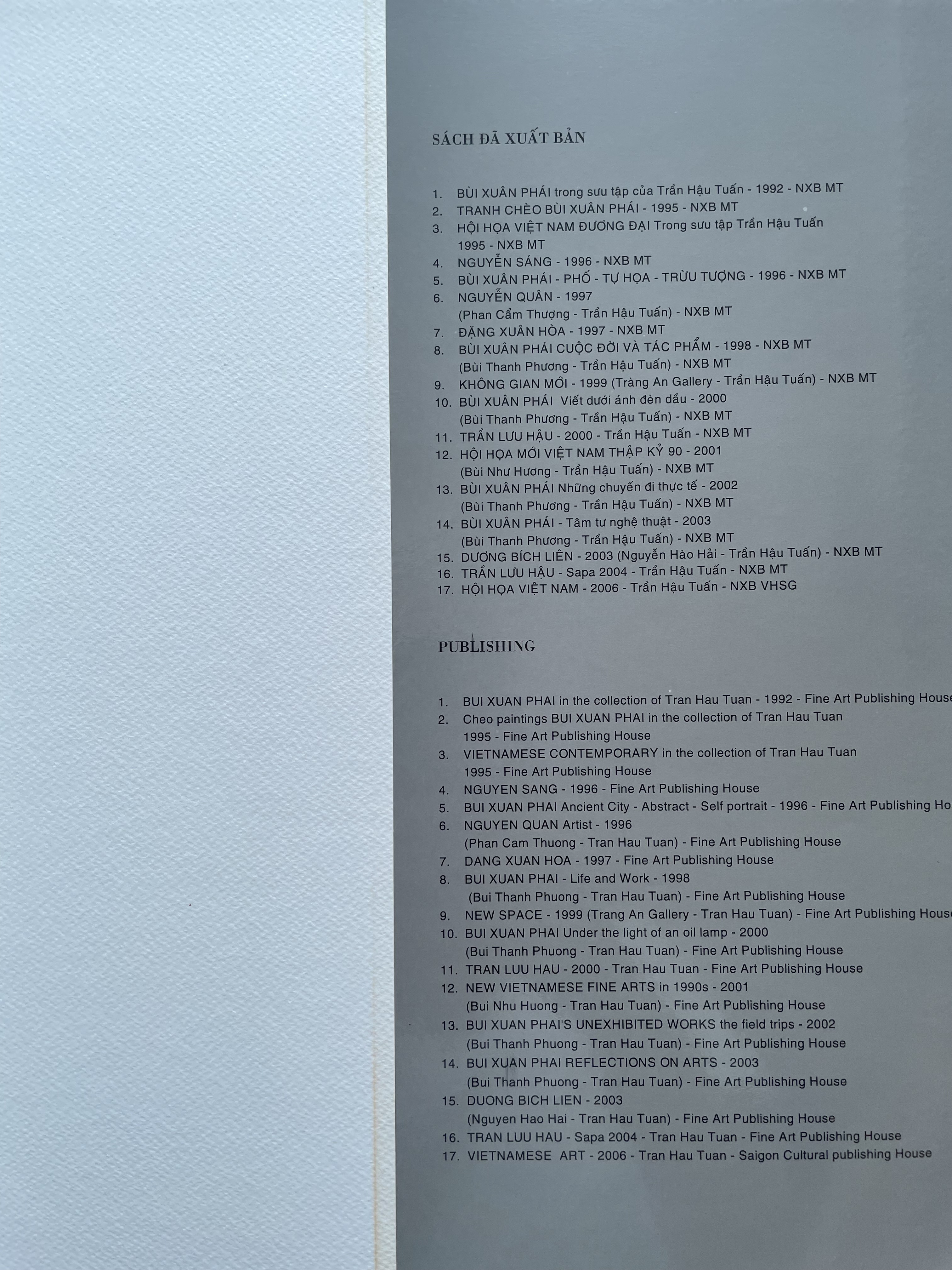 Đây có lẽ là những trụ cột trong bộ sưu tập hội họa Việt Nam thể kỷ 20 của Trần Hậu Tuấn, với một lòng kính trọng nâng niu. Qua các bài giới thiệu tác giả và những bình luận đối với một số tác phẩm ta có thể thắy đằng sau những gợn sóng tình cảm đam mê của người sưu tập và chủ sở hữu là những nhận định chuyên môn thú vị và khách quan.