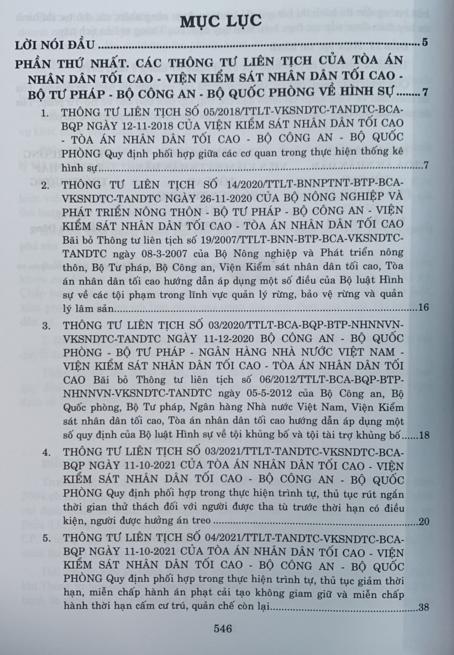 Phần thứ nhất: Các Thông tư liên tịch của Tòa án nhân dân tối cao - Viện Kiểm sát nhân dân tối cao - Bộ Tư pháp - Bộ Công an - Bộ Quốc phòng về hình sự