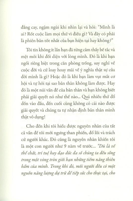 Kết luận: Nhiều nội dung trong cuốn sách là những trải nghiệm tôi từng đi qua, những kiến thức tôi đã nghiên cứu và thực hành trong suốt thời gian tôi bắt đầu công việc Đào Tạo của mình, với những điều đó tôi tin chắc chắn bạn cũng sẽ có cho mình một cách nhìn nghiêm túc hơn về cuộc đời của chính mình và thay đổi để ngày càng hoàn thiện hơn. Và đó là hành trình tự: “Cách Mạng Bản Thân” của chính mình!