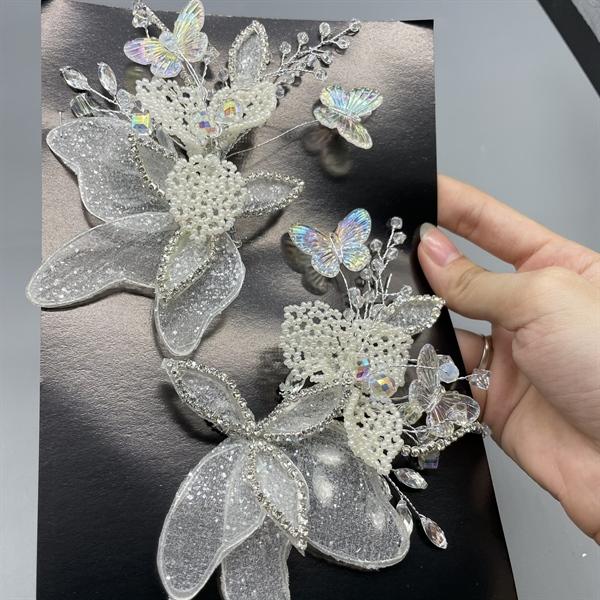✨Cài tóc cô dâu hoa kết hạt cườm đính bướm ngũ sắc