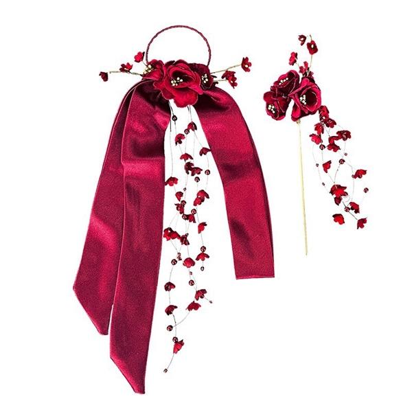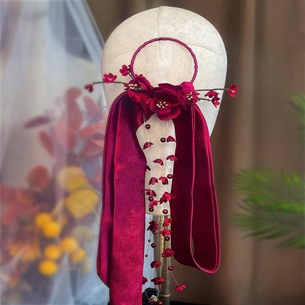 ✨Cài tóc cô dâu hoa lụa đỏ kèm trâm búi tóc mẫu mới t3/2023