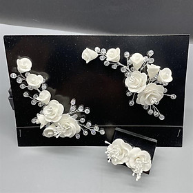 Cài tóc cô dâu hoa trắng kèm bông tai cùng bộ