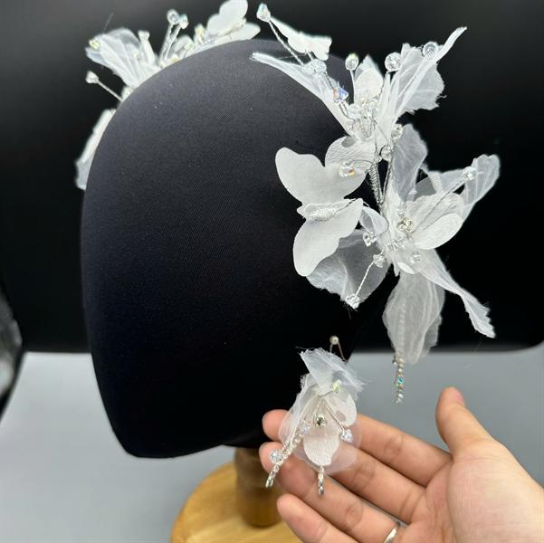 ✨Cài tóc cô dâu hoa voan trắng đính đá mẫu mới t11/2024