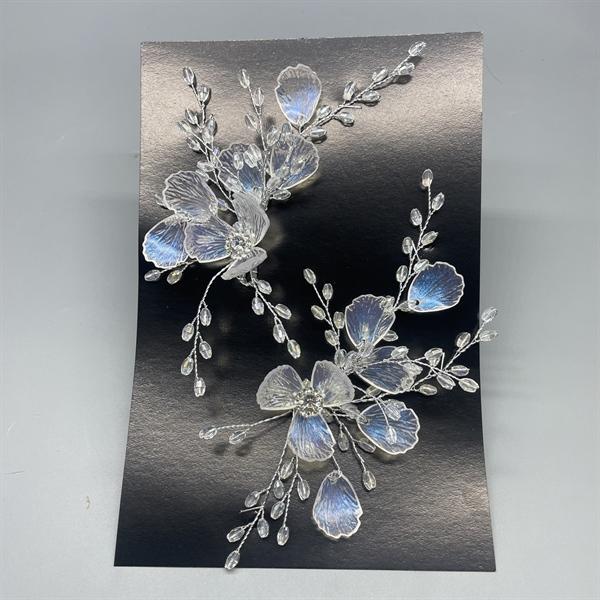 Thiết kế tinh tế với hình hoa nổi 3D được làm từ nhựa cứng trong suốt mang vẻ đẹp thanh lịch. Trâm cài tóc được làm từ chất liệu hợp kim sáng bóng, bền màu