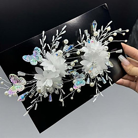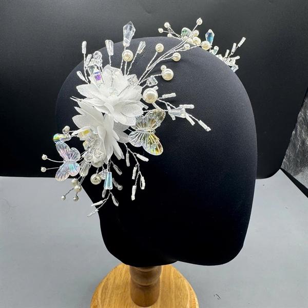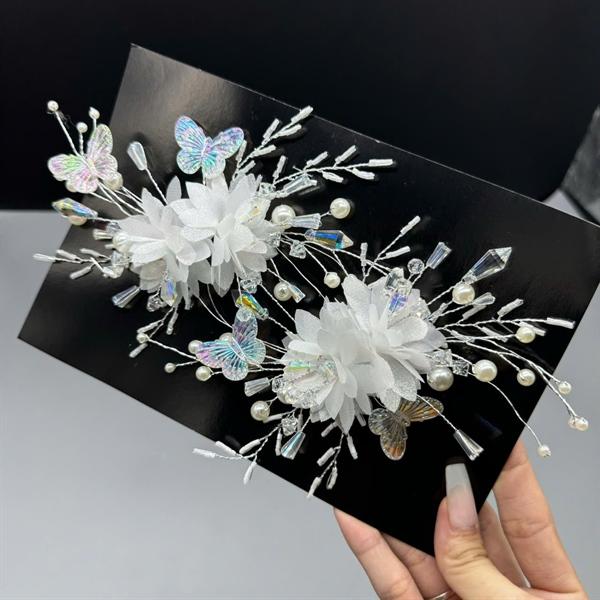 ✨Cài tóc cô dâu thủ công mẫu hoa trắng đính bướm mới t9/2024