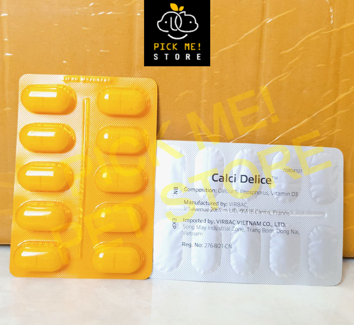 Viên Calci Delice Virbac - Bổ sung Canxi và Khoáng Chất Cho CHÓ Hộp 30 Viên (10 viên/Vỉ) Mùi vị thơm ngon, rất dễ ăn. ️ Chỉ định dùng trên CHÓ Phù hợp cho: ️ Chó con đang tăng trưởng: giúp phát triển cơ xương tối ưu ️ Chó đang mang thai và cho con bú: chó mẹ sẽ có nhiều sữa nuôi con, chó con sinh ra sẽ khỏe mạnh và mau lớn. ️ Hỗ trợ cải thiện các bệnh về xương: gãy xương, loãng xương, phẫu thuật xương ️ Chó có cường độ làm việc cao như chó đua, chó nghiệp vụ ️ Ngăn ngừa huyết khối và hỗ trợ tim mạch. HDSD