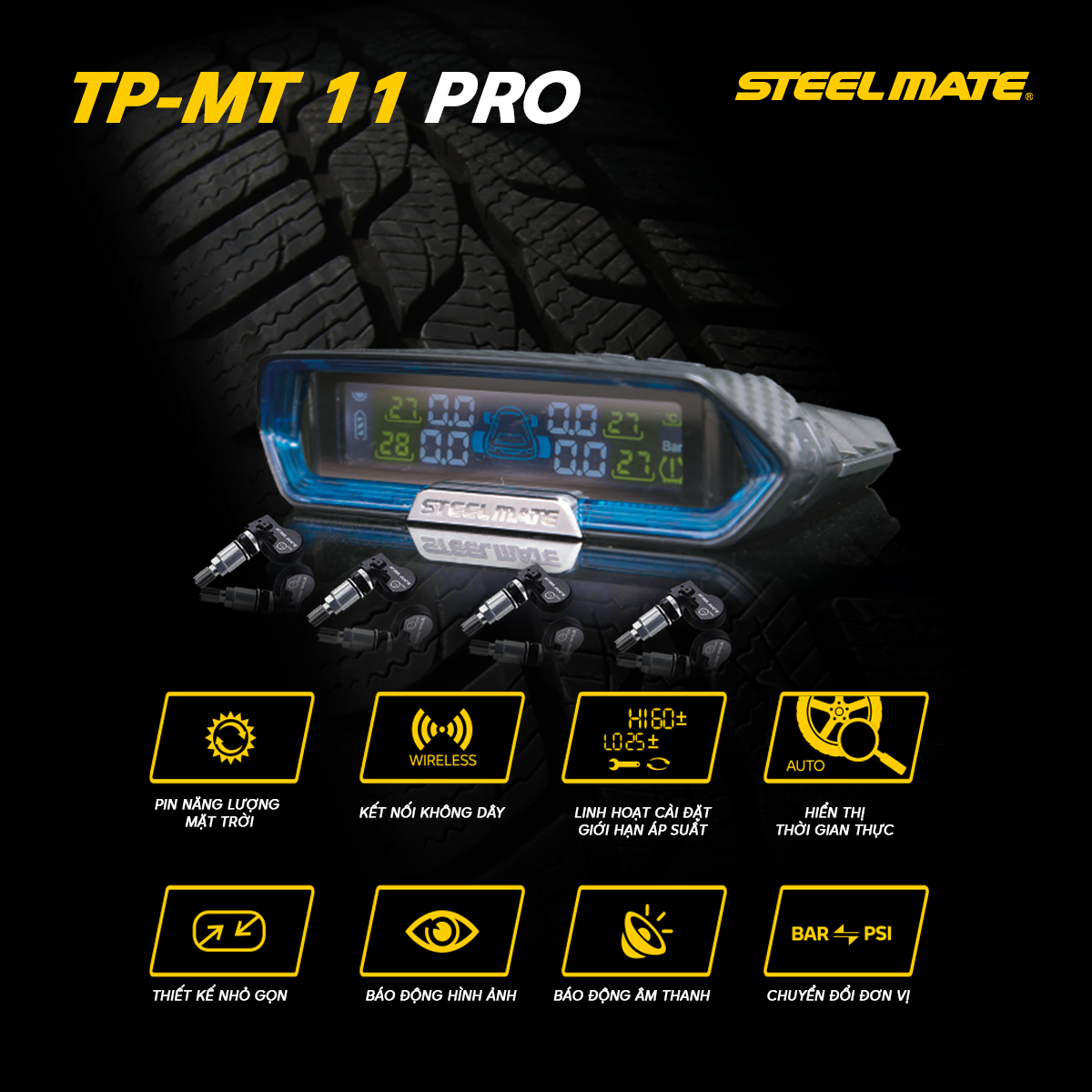 Cảm biến áp suất lốp năng lượng mặt trời TP-MT11 PRO STEELMATE - một nâng cấp hoàn hảo, cải tiến tính năng mới, kết nối nhanh hơn, thông minh hơn, thời lượng sử dụng lâu hơn, bổ sung các khuyết điểm còn thiếu sót của các dòng cảm biến đi trước.