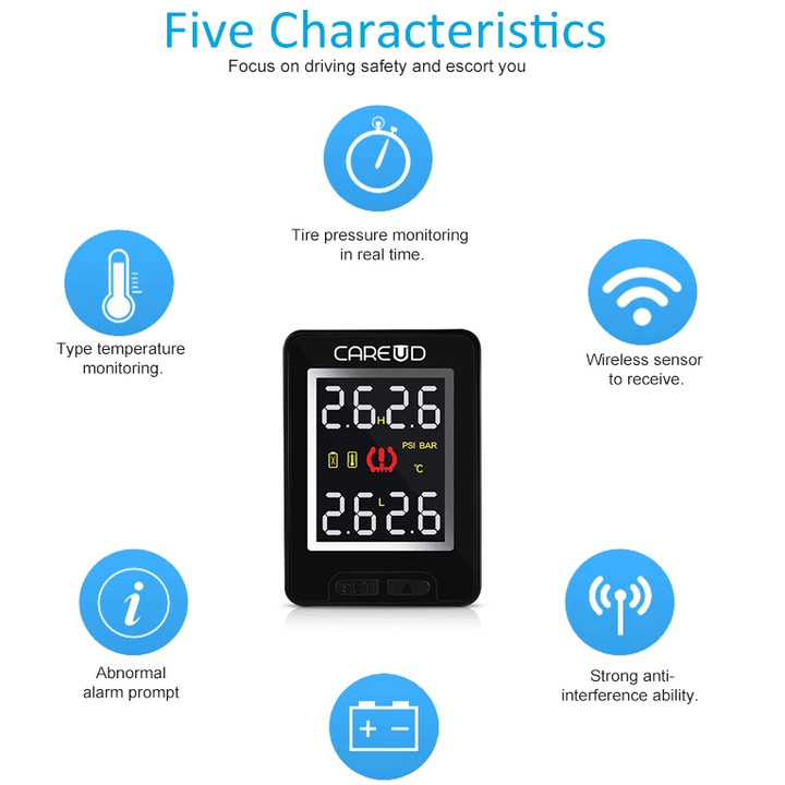 ✨Cảm biến áp suất lốp trong cao cấp thương hiệu Careud dành cho các hãng xe - Cảnh báo áp suất, chính xác: ±1.5PSI (±0.1bar) - Điện áp: 8-16V - Hàng Nhập Khẩu