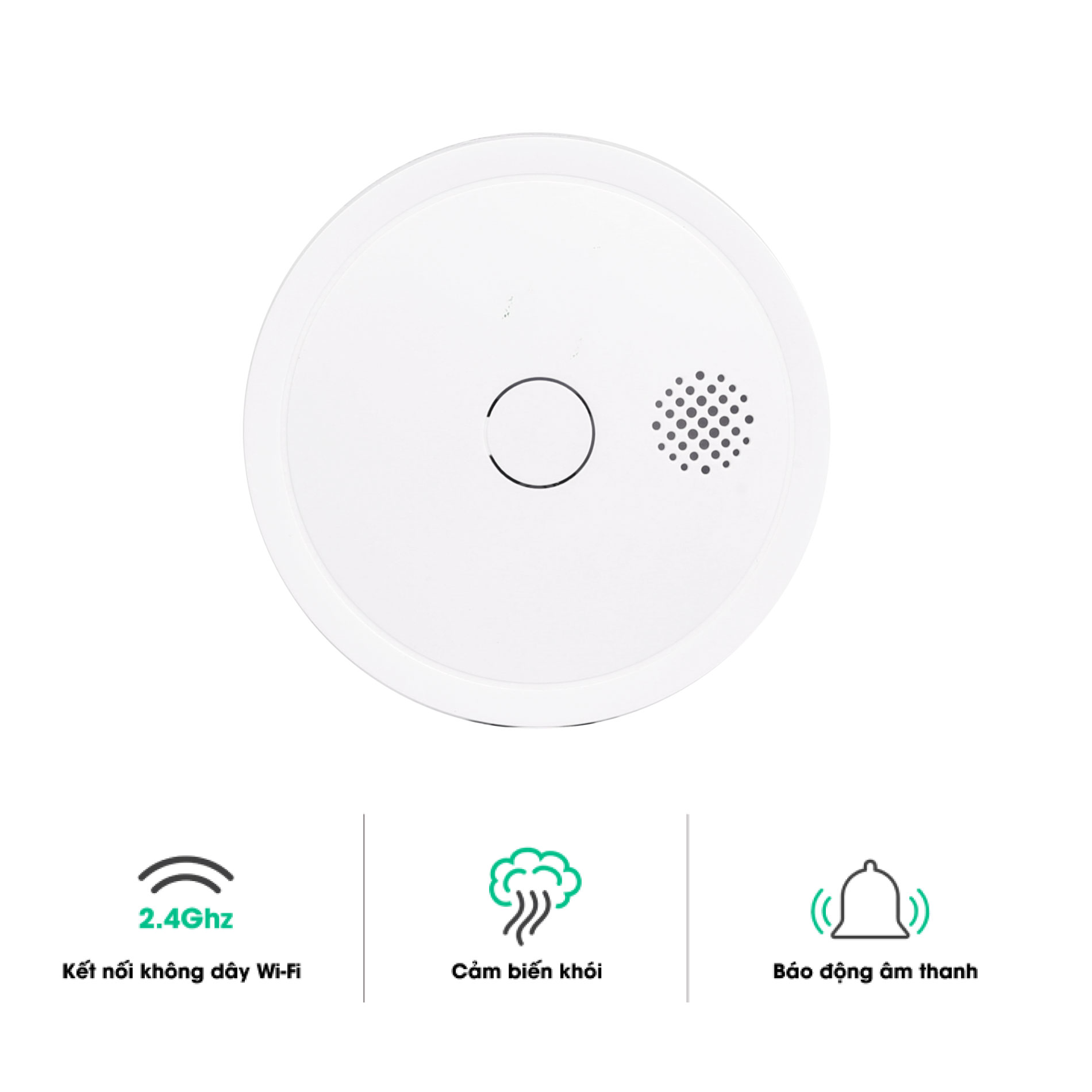 Cảm biến khói sẽ ngay lập tức phát âm thanh cảnh báo ≥85dB đồng thời gửi cảnh báo về smartphone và kích hoạt kịch bản chữa cháy giảm thiểu thiệt hại về người và tài sản ngay khi phát hiện sự xuất hiện của khói trong không khí.