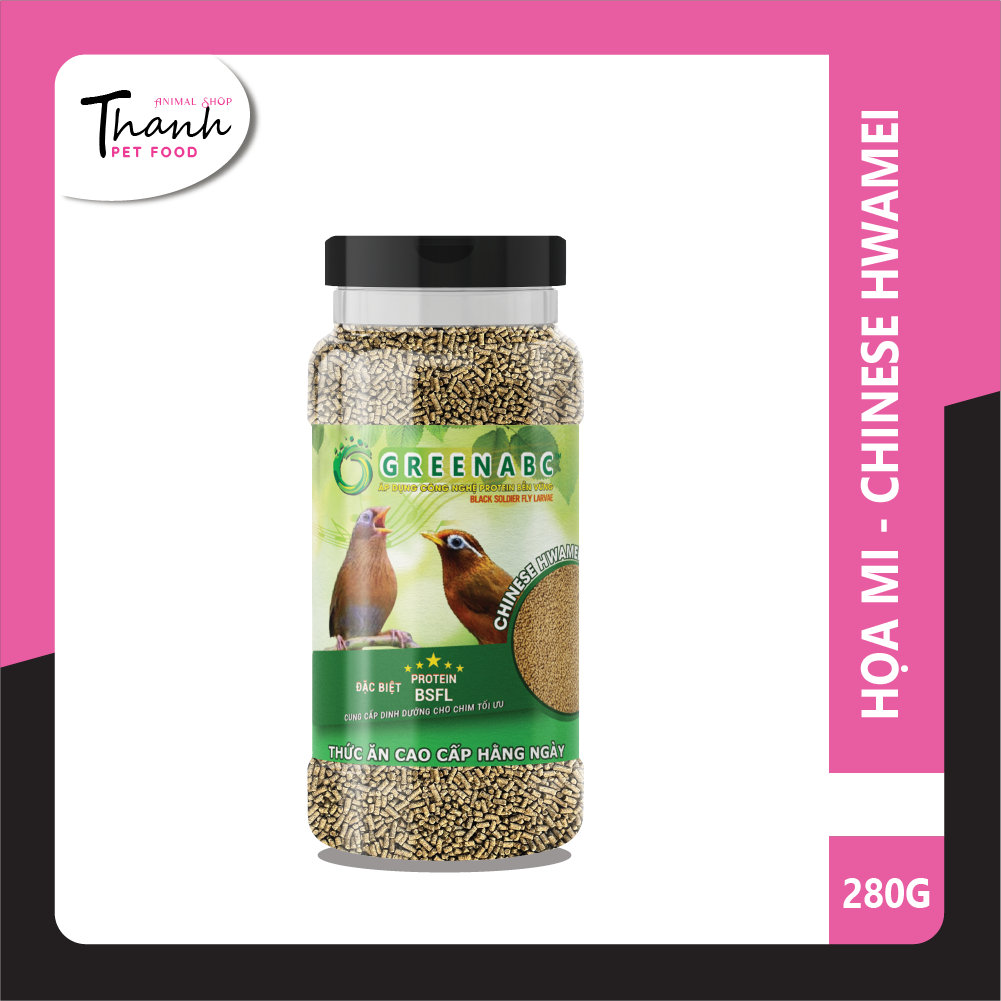 GREENABC - THỨC ĂN CHIM HỌA MI HÀNG NGÀY & BỔ SUNG GREENABC là thức ăn cao cấp dành cho CHIM HỌA MI. Đặc biệt sản phẩm GREENABC được sản xuất theo phương pháp Áp dụng công nghệ PROTEIN bền