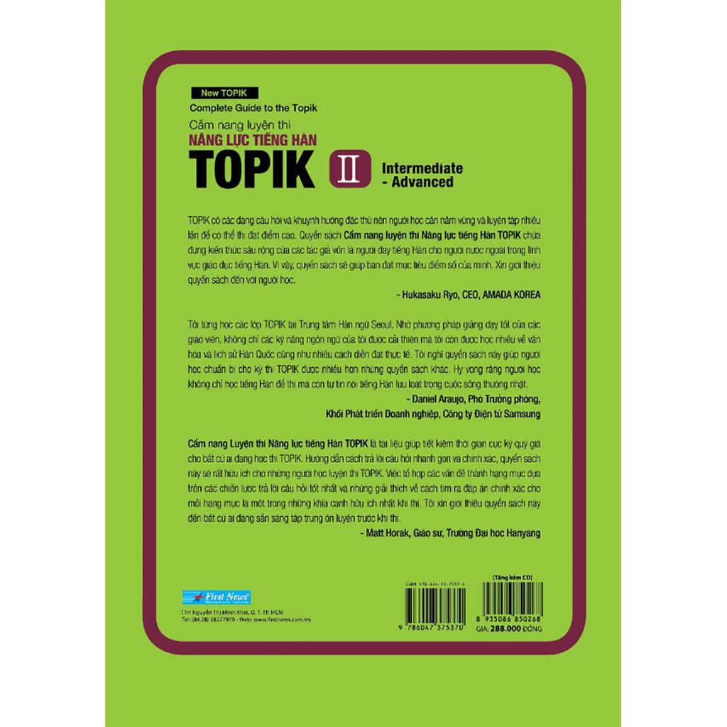 Cẩm Nang Luyện Thi Năng Lực Tiếng Hàn Topik II Intermediate - Advanced Cẩm nang Cẩm Nang Luyện Thi Năng Lực Tiếng Hàn Topik được biên soạn dành cho người học chuẩn bị tham dự Kỳ