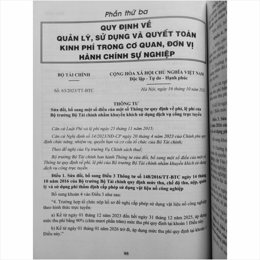 Phần thứ ba. Quy định về quản lý, sử dụng và quyết toán kinh phí trong cơ quan, đơn vị hành chính sự nghiệp