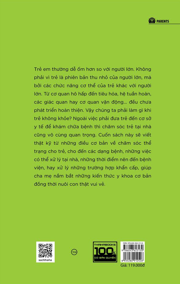 Làm cha mẹ, ai cũng muốn con mình được khỏe mạnh. Tuy nhiên, nếu con ốm hoặc có những biểu hiện không bình thường thì sao? Cha mẹ lo lắng là điều rất bình thường nhưng chúng ta sẽ bình tĩnh đối mặt được với những nỗi bất an, đến từ cảm giác mơ hồ vì cảm thấy mình không biết gì cả, nếu như được giải thích hoặc đọc sách chứa kiến thức cần thiết. Chính vì vậy, trong cuốn sách này, tác giả – Bác sĩ nhi khoa Yasumi Morito đã viết chi tiết từ những điều cơ bản về chăm sóc thể trạng cho trẻ cho đến các dạng bệnh, những việc có thể thực hiện tại nhà, thời điểm nên đến bệnh viện và cách xử lý những trường hợp khẩn cấp. Nhờ đó, kể cả không rõ về cơ thể và bệnh, cha mẹ vẫn có thể chăm sóc trẻ hợp lý.