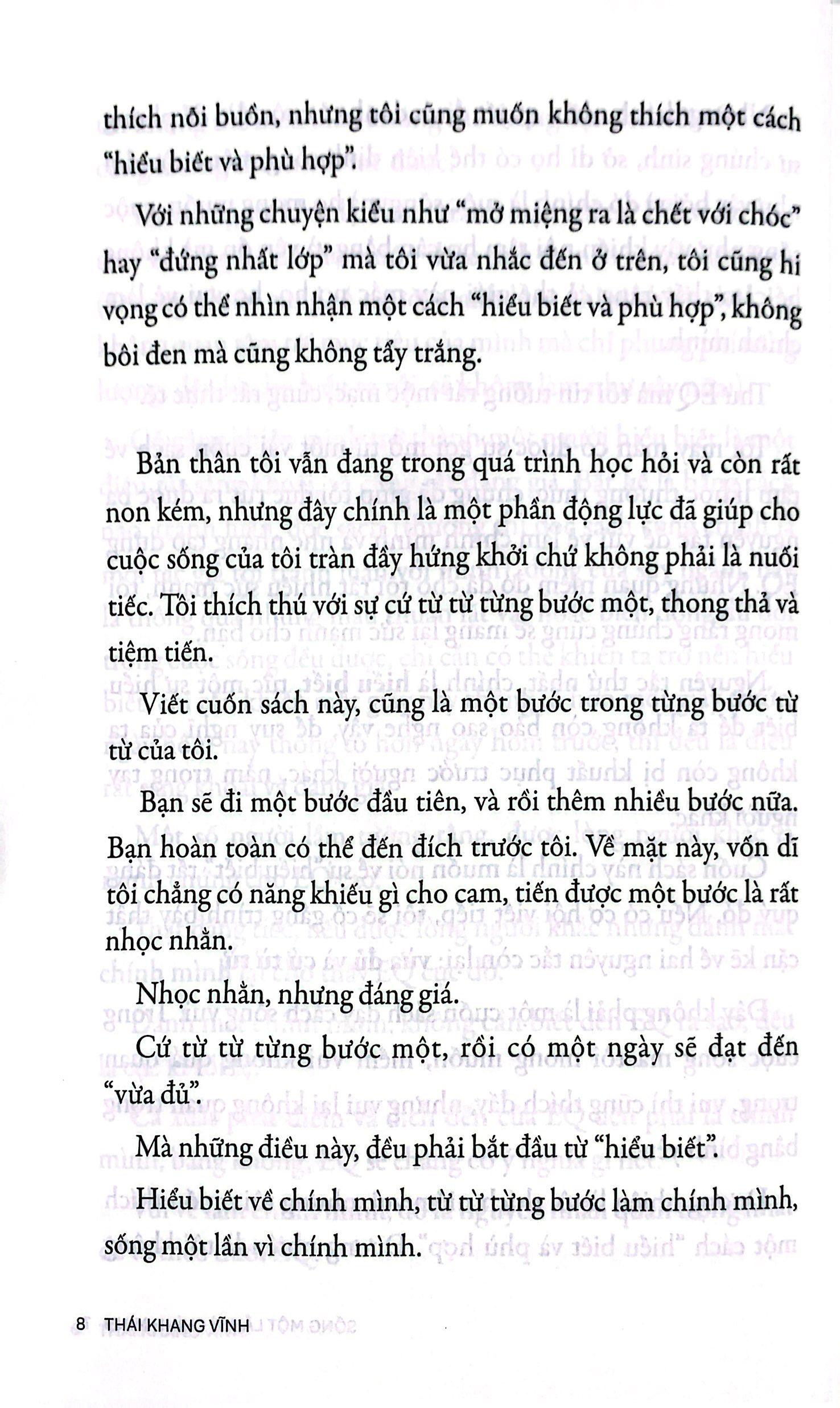 Nhận biết cảm xúc của bản thân giúp làm chính m.ình và khiến mối quan hệ nhân sinh trở nên phong phú. Quá trình học hỏi ấy có thể kéo dài cả một đời người, nhọc nhằn nhưng vô cùng đáng giá. Bạn không cần phải vội vã, hãy cứ từ từ từng bước một. Và bước đầu tiên trong tất cả các bước, hãy coi cảm xúc không phải đặc quyền!