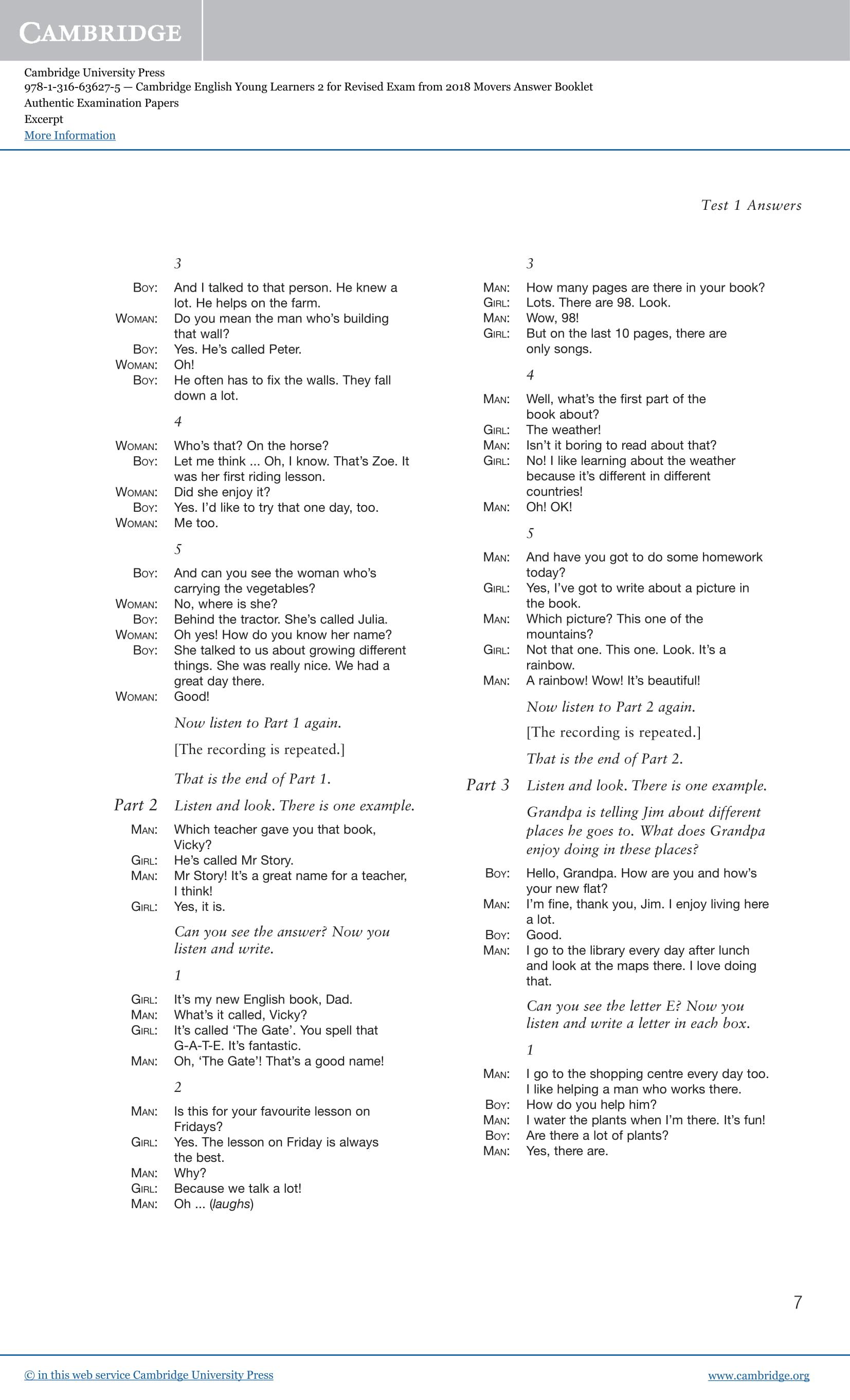 Movers 2 TEST 1 Authentic Examination Papers - Listening TEST 1