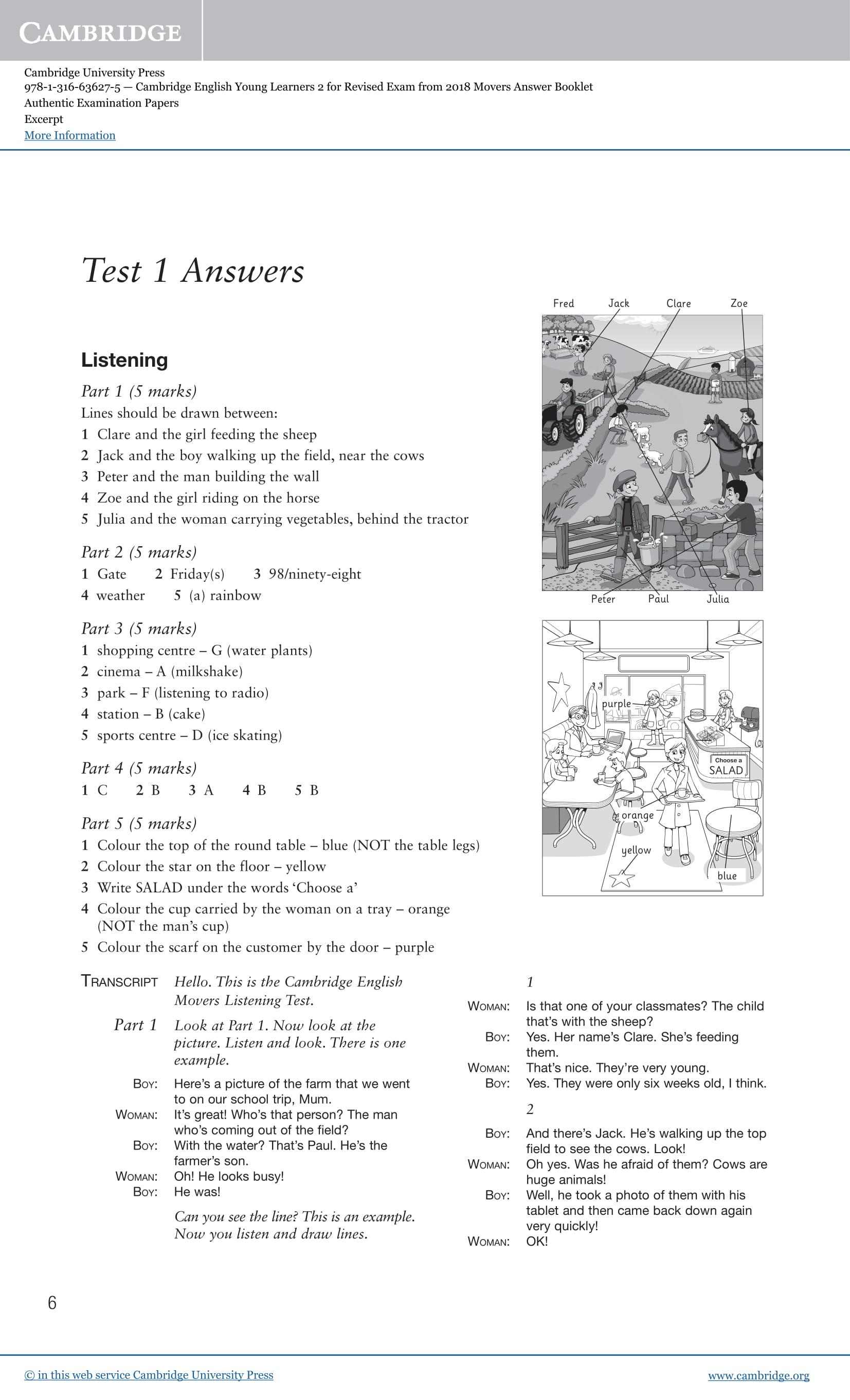 It contains answers for all three tests, the audioscripts and examples of the type of interchange to expect in the Speaking test. It also includes the Movers Vocabulary list, organised by theme. An Audio CD (which contains the listening sections of the tests) and the Student's Book are available separately.