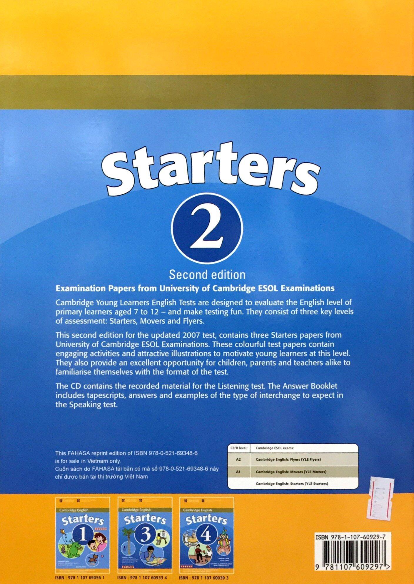 Cambridge Young Learner English Test Starters 9: Student Book These practice tests from Cambridge ESOL are designed to evaluate the English level of primary learners aged 7-12. Updated to reflect the 2007 changes, they provide