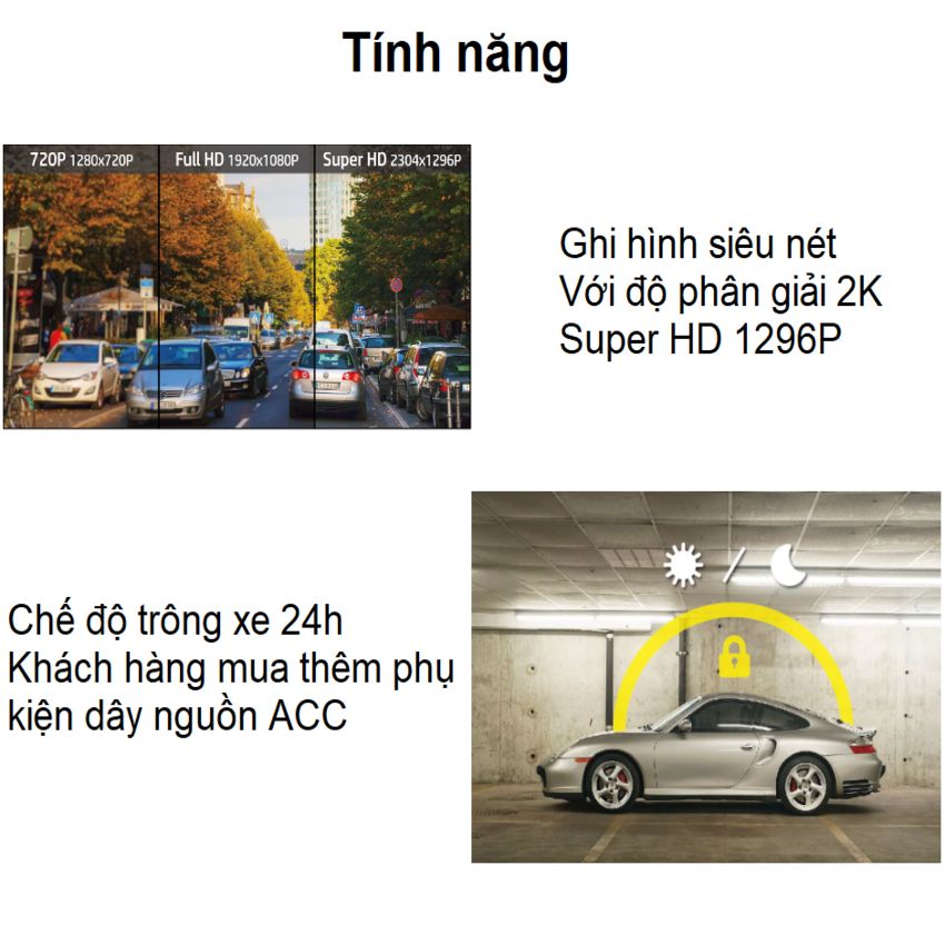 - Tính năng giám sát đỗ xe 24 giờ (cần mua thêm bộ kit để kích hoạt tính năng)