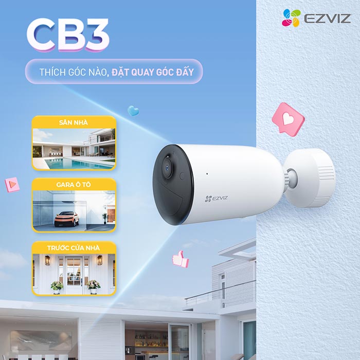 Camera Wifi Ezviz CB3 dùng pin, đàm thoại 2 chiều, có thể sạc năng lượng mặt trời