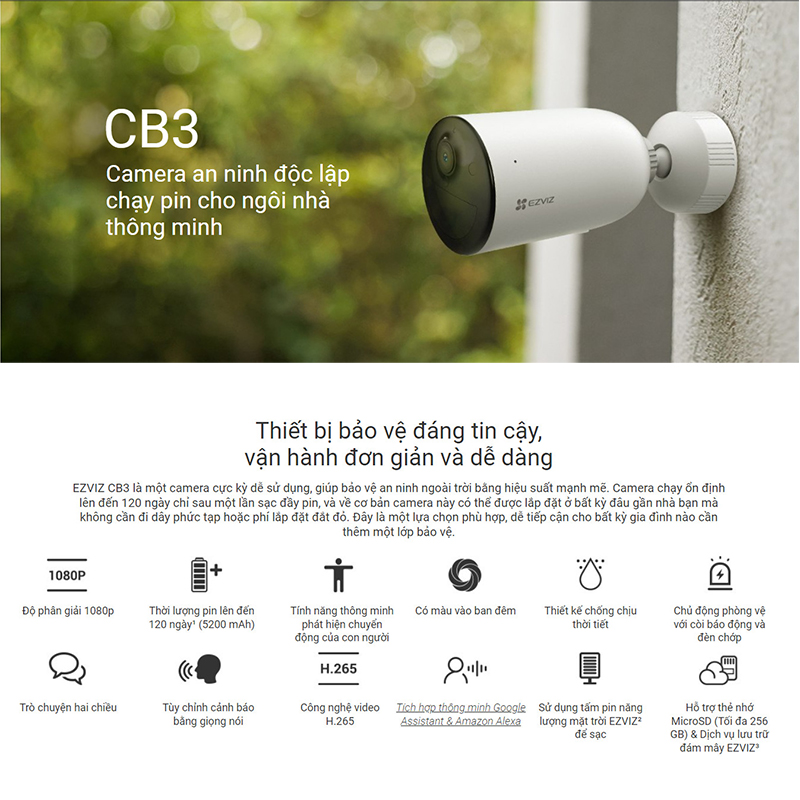 Camera Wifi EZVIZ CB3 - Dùng pin sạc 5200 mAh, lên tới 120 ngày