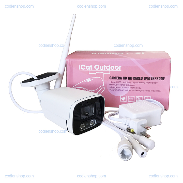 - Camera ICat Outdoor là dòng sản phẩm camera không dây, chuyên sử dụng lắp ngoài trời bởi khả năng chống thấm nước, khả năng chống chịu mưa, nắng, gió.