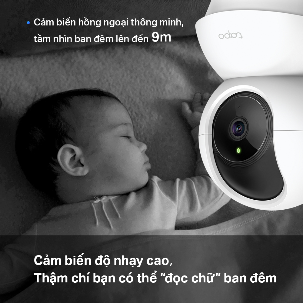 - Độ phân giải Full HD 1080p – hình ảnh rõ nét, chi tiết - Xoay ngang 360° & dọc 114° – quan sát toàn cảnh, không góc khuất - Hồng ngoại ban đêm nhìn rõ đến 10m - Phát hiện chuyển động thông minh, cảnh báo tức thì - Đàm thoại 2 chiều qua micro & loa tích hợp - Hỗ trợ thẻ nhớ microSD tối đa 512GB - Kết nối Wi-Fi ổn định, dễ cài đặt qua app Tapo - Chế độ riêng tư – tắt camera nhanh chóng khi cần - Thiết kế nhỏ gọn, linh hoạt lắp đặt mọi không gian - Tương thích Google Assistant & Amazon Alexa   LƯU Ý KHI MUA HÀNG Cảm ơn quý khách đã quan tâm đến sản