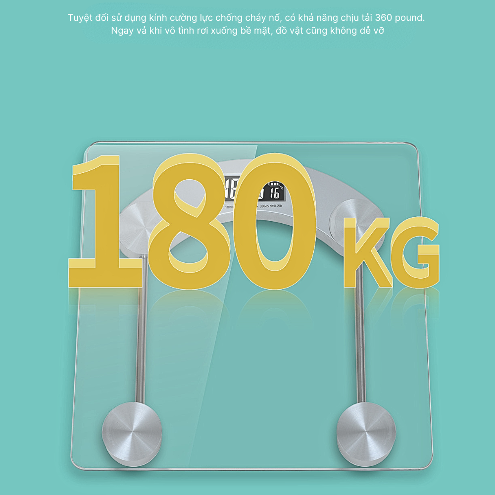 - Sản phẩm sở hữu kiểu dáng với mặt cân được làm từ kích cường lực cao cấp, cho tải trọng tối đa lên đến 180kg, đồng thời, chất liệu kính còn giúp việc làm sạch và di 3. chuyển cân cũng trở nên dễ dàng và nhanh chóng hơn.
