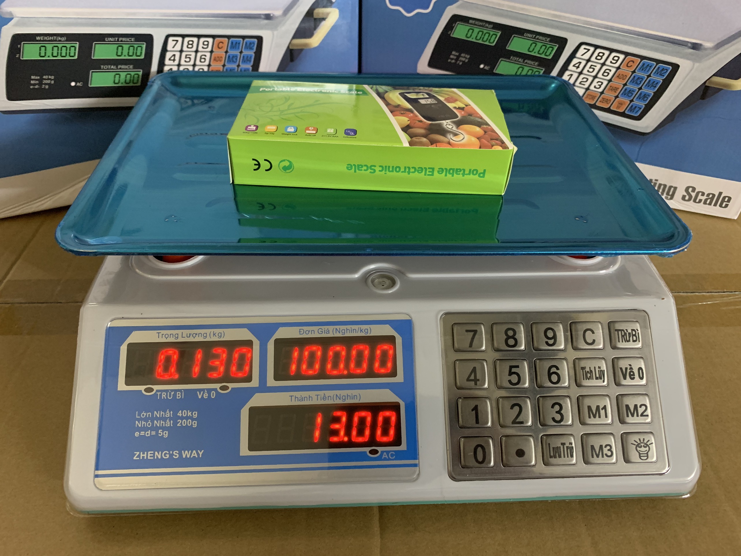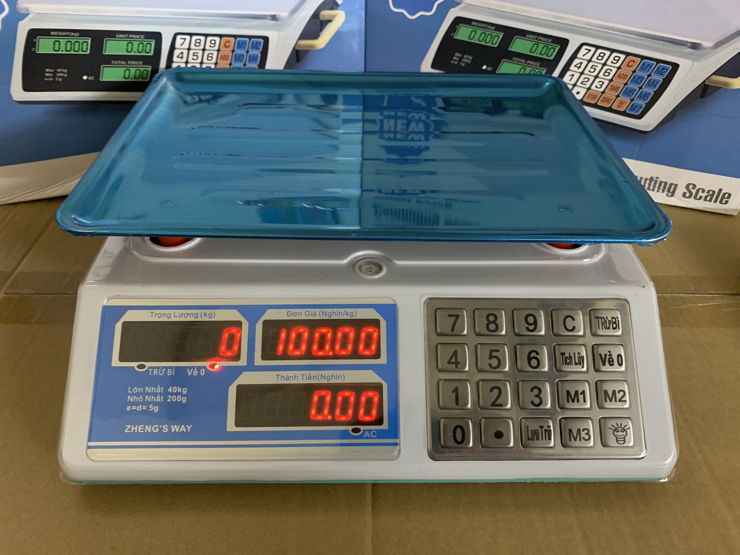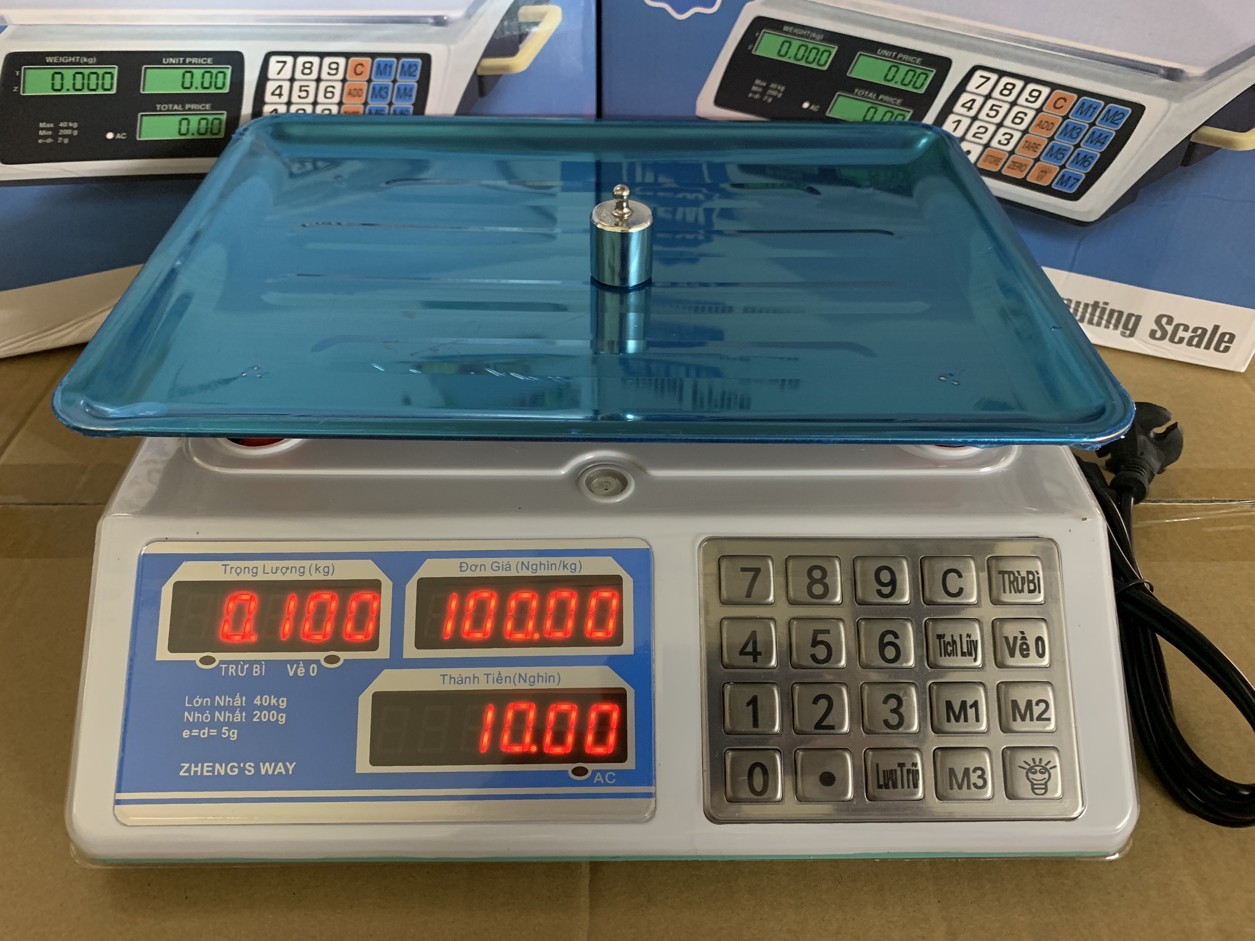 Chức năng chính: cân, tính tiền, trừ bì, cộng dồn, lưu mã,