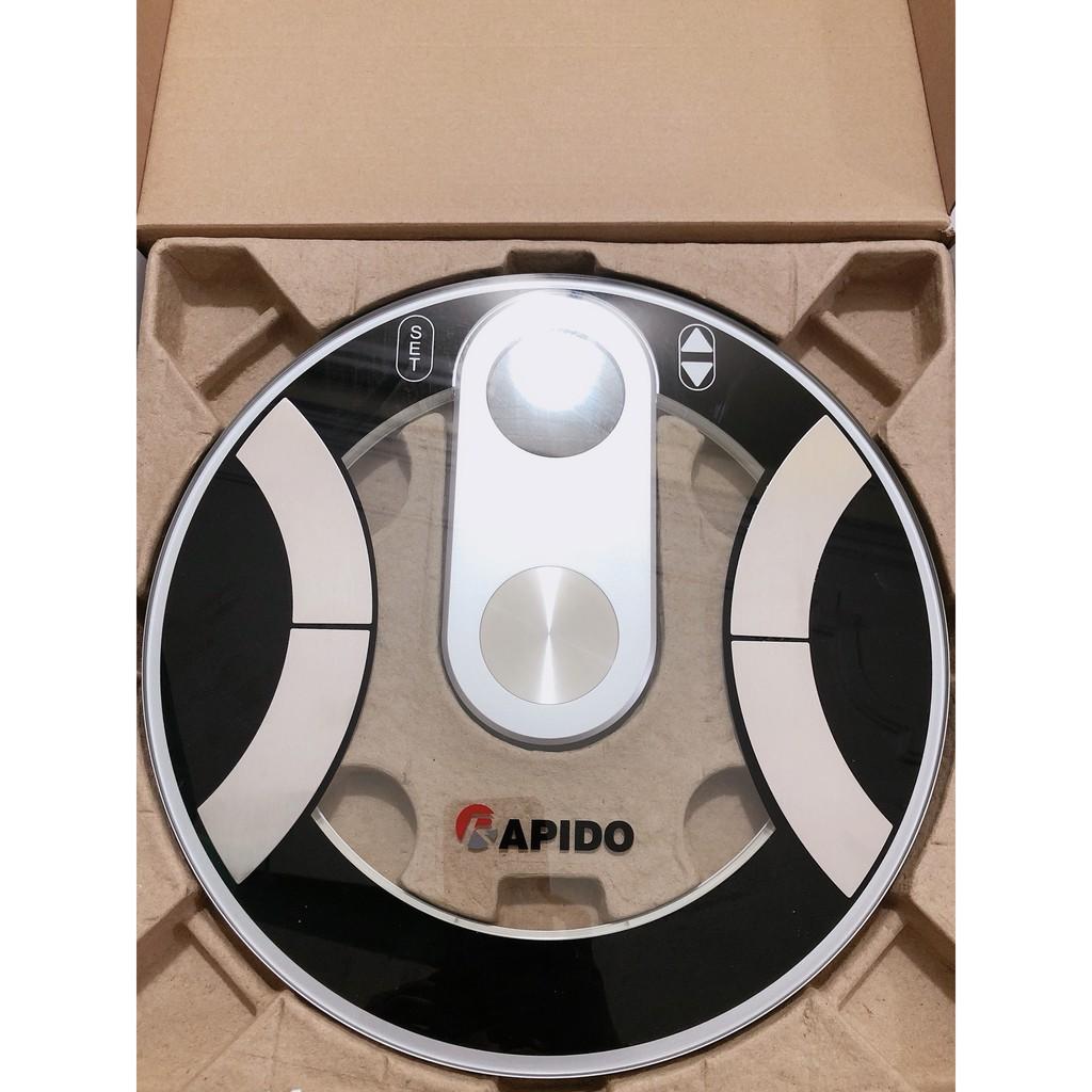 - Cân sức khỏe Rapido sử dụng cảm ứng lực với độ chính xác cao. Có khả năng phân tích được các chỉ số: