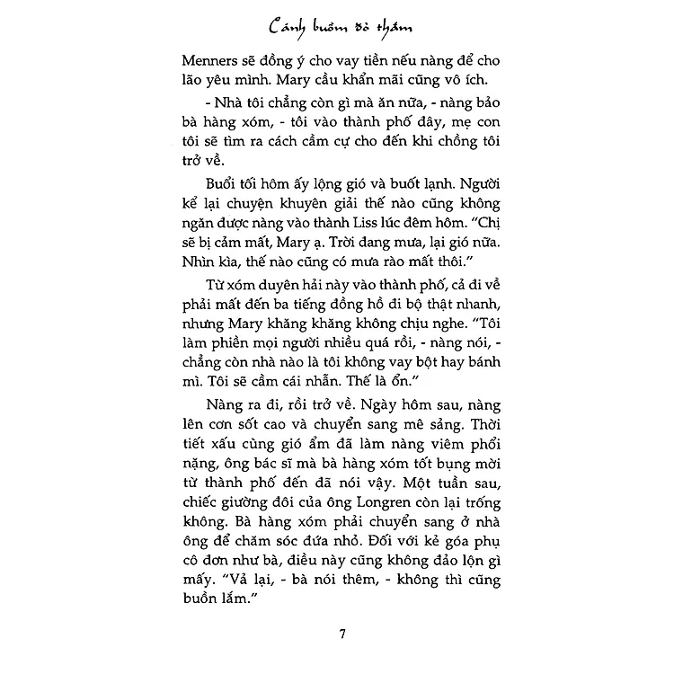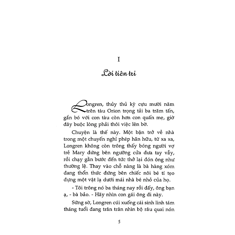 • "Một hôm, thằng Hin - đứa con mười hai tuổi của Menners - trông thấy chiếc thuyền của cha nó bị nước cuốn đập vào chân cây cầu nhỏ và vỡ mạn thuyền nên lập tức chạy về mách cha nó. Cơn bão vừa kéo tới, Menners đã quên không kéo thuyền lên bãi cát. Lão chạy vội ra phía biển, còn kịp nhìn thấy ông Longren đang đứng hút thuốc ở rìa đập chắn sóng ..."
