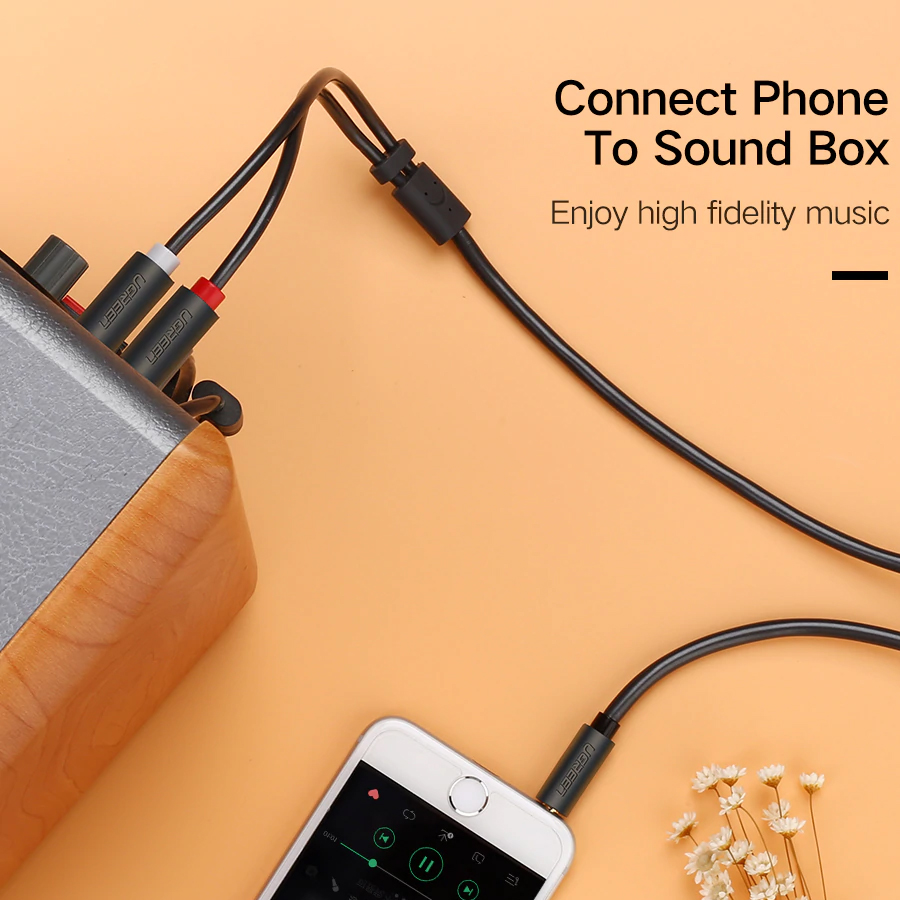 Cáp Audio 3.5mm to AV hoa sen (RCA) dài 1M Ugreen 10772. - Cáp Audio 3.5mm sang AV hoa sen (RCA) dài 1M Ugreen 10772 giải pháp lý tưởng cho phép kết nối cáp audio 3.5mm từ điện thoại thông minh, máy nghe nhạc MP3 hoặc máy tính bảng với RCA giúp kết nối với hệ thống âm thanh (loa, âm ly) gia đình của bạn, trải nghiệm âm thanh như tại rạp.