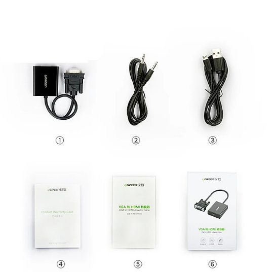 Ugreen 40248 Hdmi To Vga + 3.5Mm Audio + Mirco Usb Converter Flat Design Đen Mm103 1. Features: connect HDMI port device to monitor, projector with VGA port. 2. Cable length: 15CM 3. Wire form: