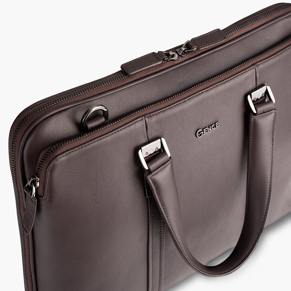- Túi xách nam công sở Gence da bò Swift màu nâu GCE26 - Xuất xứ: Việt Nam - Mã SP: GCE26 - Sử dụng: Túi xách, cặp da đeo ngang vai, Đựng được máy tính xách tay