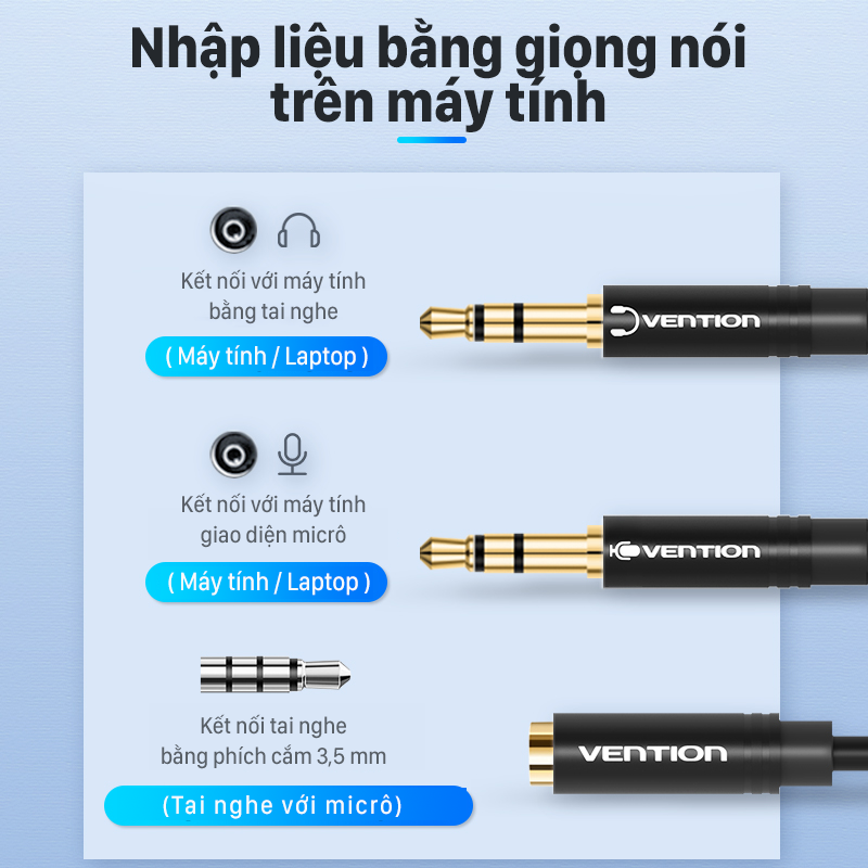 ✨Cáp gộp tai nghe 2 vào 1 Jack 3.5mm - Cáp audio 2 dương 1 âm cho máy tính, laptop hỗ trợ loa và mic chính hãng Vention BBTBY - Hàng chính hãng