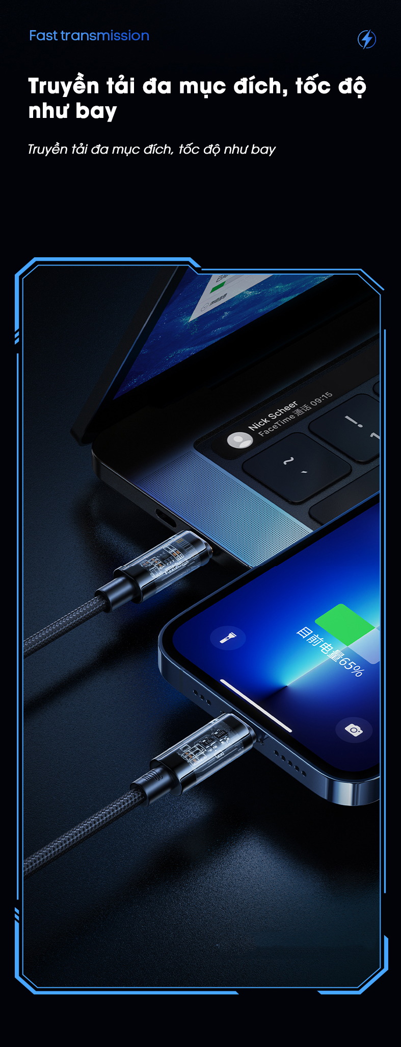 Hỗ trợ sạc nhanh PD/ QC 3.0 . Cáp vải dù, đầu kim loại siêu bền Chất liệu bề mặt: NYLON Chất liệu: Vỏ nhôm + TPE + Dây nylon bện chất lượng cao Màu