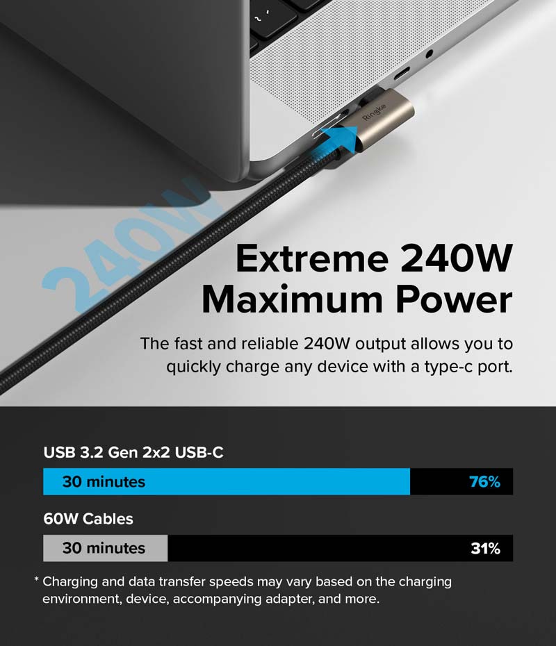 Cáp sạc nhanh 240W RINGKE 90 Degree USB-3.2 Gen 2X2 USB-C Cable Ưu điểm sản phẩm Truyền dữ liệu và sạc nhanh Cáp Ringke 90 Degree USB 3.2 Gen 2X2 USB-C Cable cung cấp giải