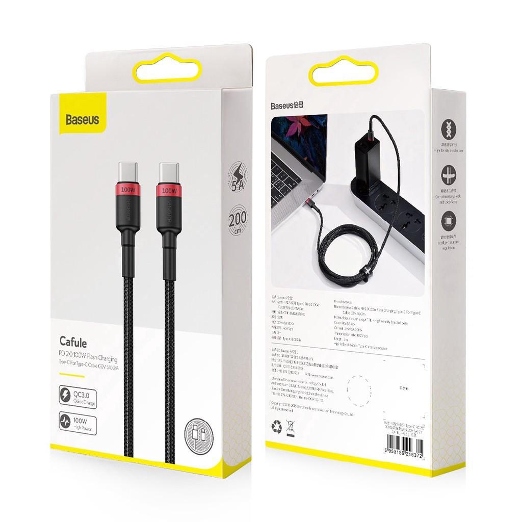 Cáp sạc nhanh C to C công suất 100W Baseus Cafule PD2 0 cho iPad MB 100W, 20V 5A, 2m, PD QC3 0