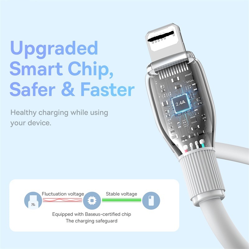 Cáp sạc nhanh và truyền dữ liệu Ba-se-us 20W, Ba-se-us Crystal Shine Series Fast Charging Data Cable - Cáp sạc Lai-nin Ba-se-us cho tất cả dòng ai-phôn, sạc và đồng bộ dữ liệu tốc độ