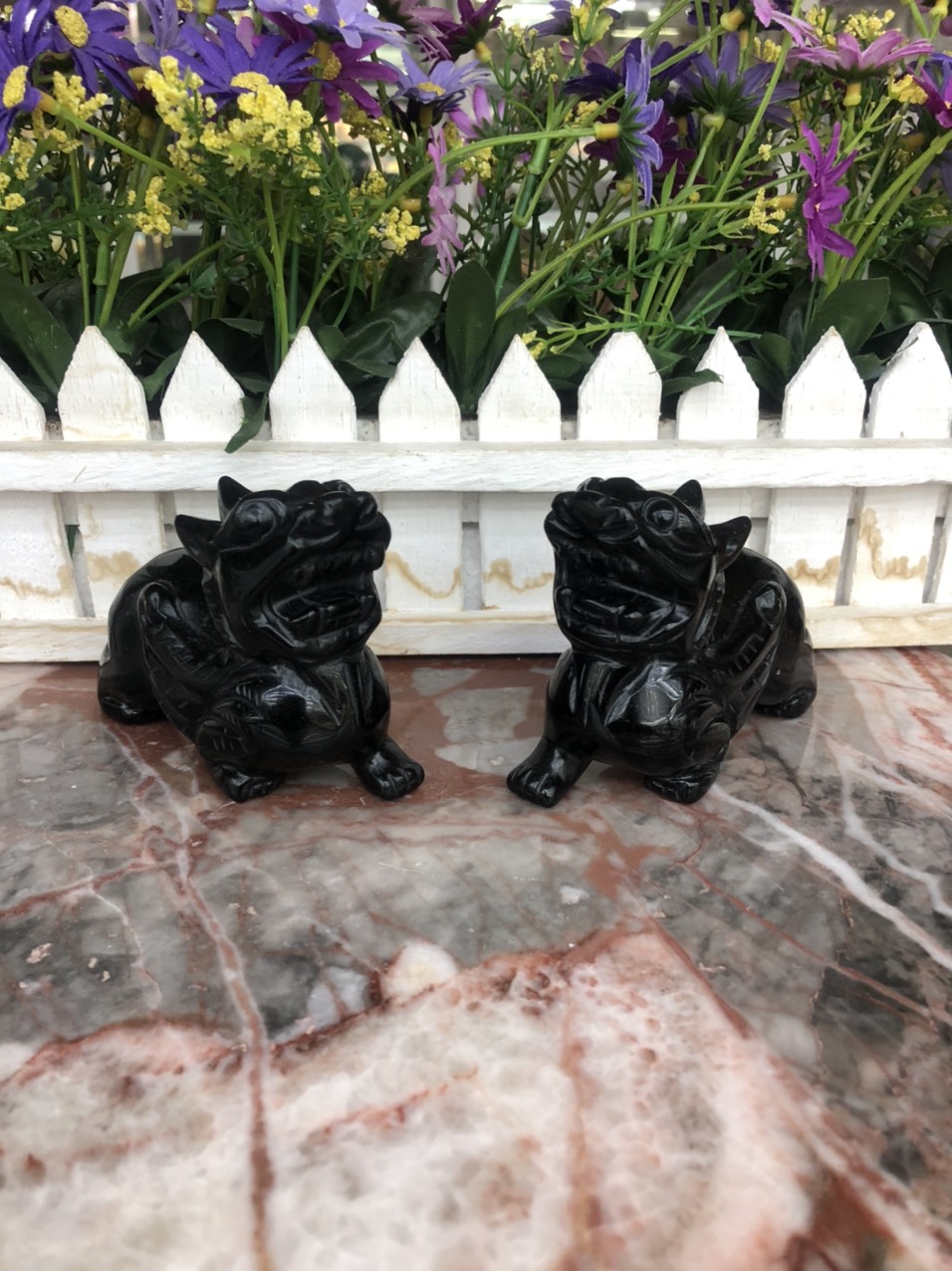 ✨Cặp Tỳ Hưu phong thủy đá thạch anh đen - Dài 10 cm