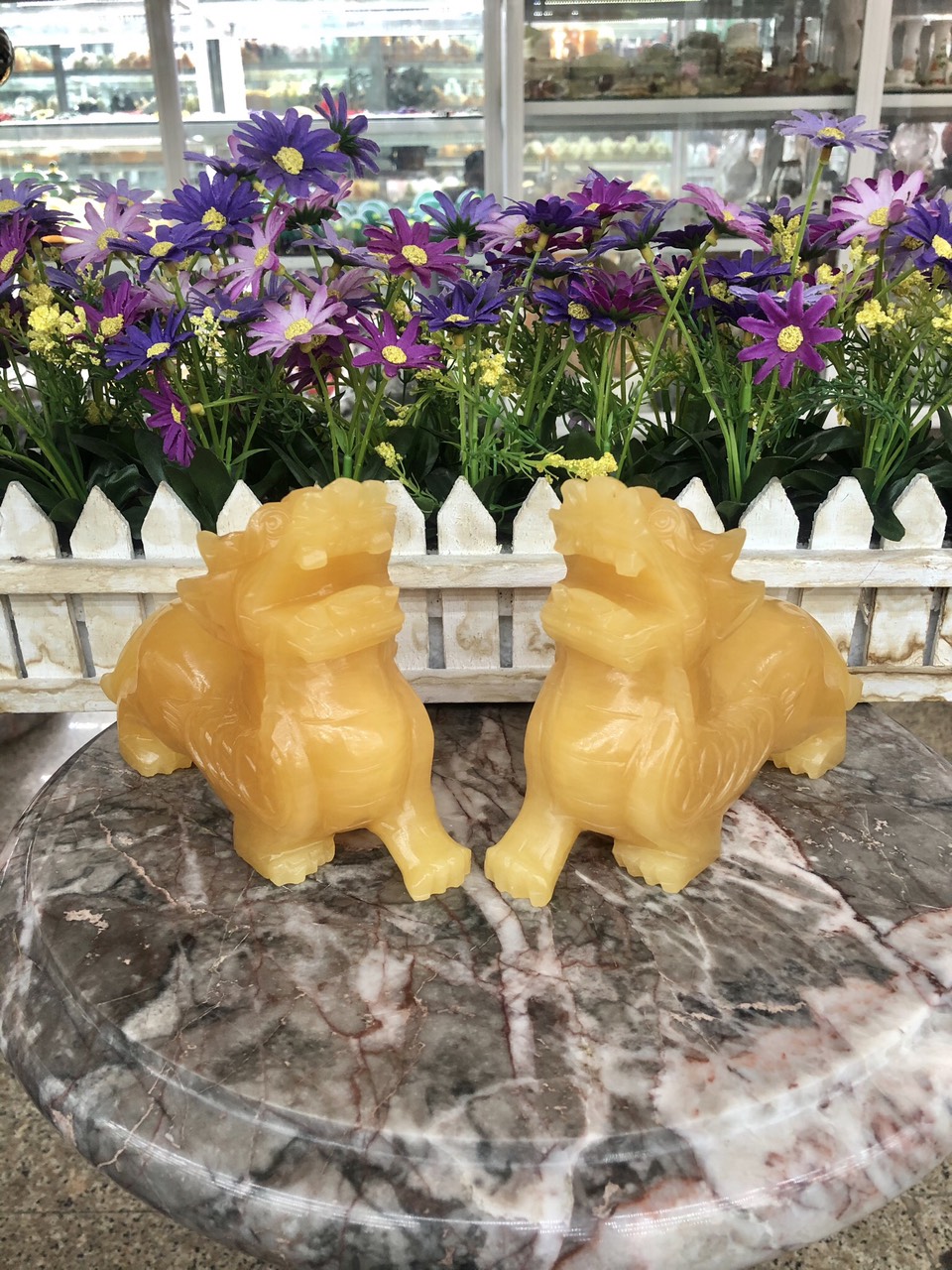 ✨Cặp Tỳ Hưu phong thủy đá thạch anh vàng - Dài 15 cm