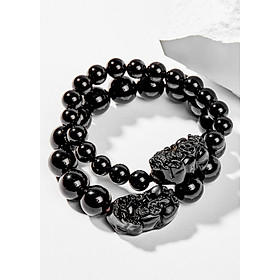 Cặp Vòng Tay Phong Thủy Nam & Nữ Đá Obsidian (12mm, 8mm) mệnh Thủy, Mộc