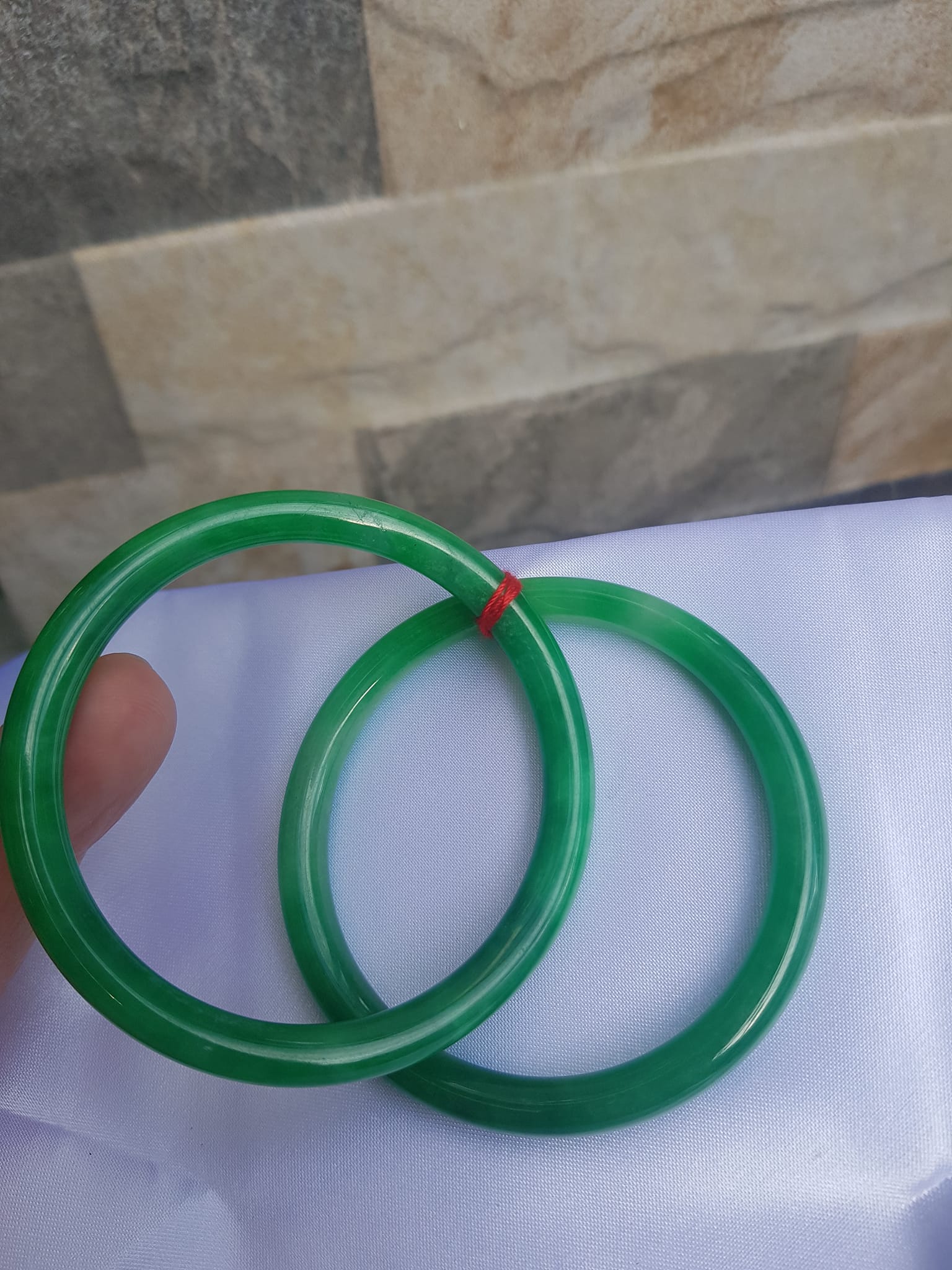Cặp Vòng Cẩm Thạch tròn 51mm x 6mm Màu xanh ngọc đậm bóng đẹp ạ Nữ mệnh Mộc Hỏa Thủy 50kg - 56kg ạ