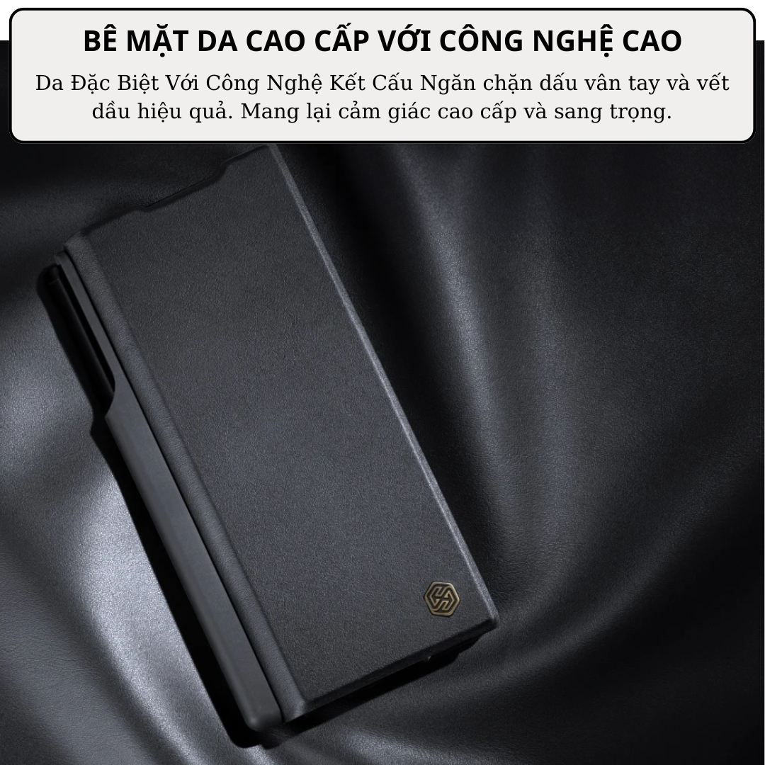 Case bao da chống sốc cho Samsung Galaxy Z Fold 6 trang bị nắp bảo vệ Camera và ngăn đựng S-Pen hiệu Nillkin Qin Pro (chất liệu da cao cấp, thiết kế thời trang cá tính)