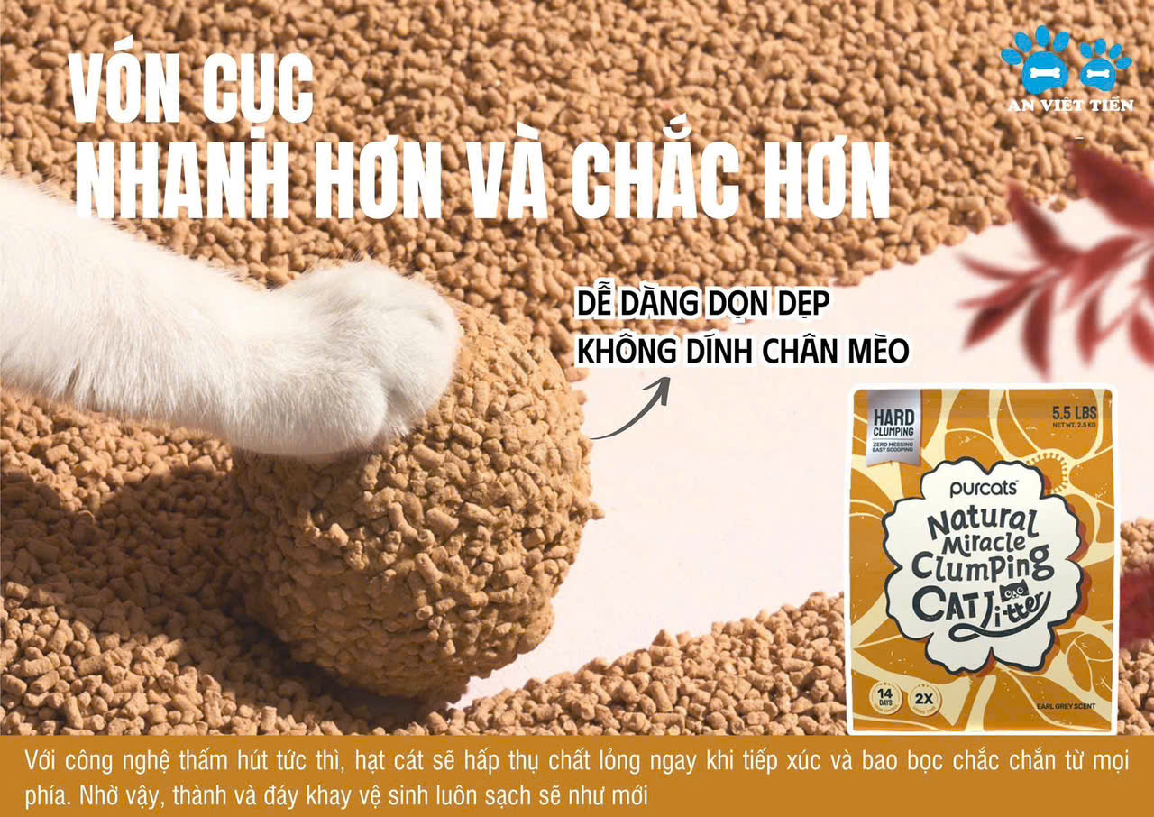 Công nghệ kiểm soát mùi vượt trội được kế thừa từ dòng sản phẩm Purcats giúp cát vệ sinh Miracle có khả năng khóa mùi hiệu quả và mạnh mẽ.