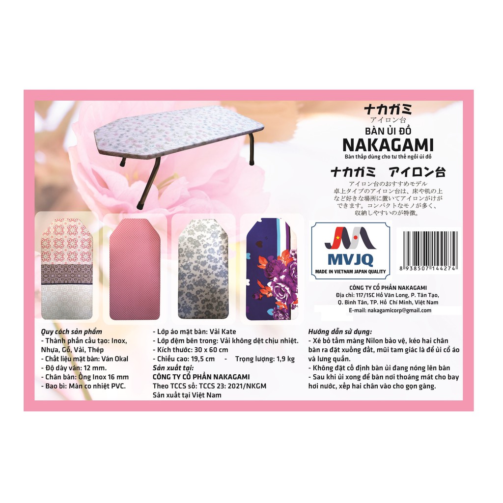 - Áo Bọc Bàn ủi đồ Nakagami kích thước 30x80 - 30x90 cm có nhiều kiểu hoa văn đẹp có thể thay vào tùy thích. Chất liệu vải Kate mỏng tiện cho giặt ủi, mau