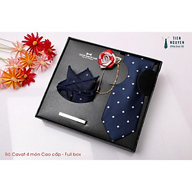 Hộp quà tặng gồm 1 cà vạt nam 8cm kích cỡ chuẩn 8cmx150 k. 1 hộp đựng cà vạt , 01 Khăn túi áo véc 20x20 cm , 1 cặp khuy áo măng sét cũng
