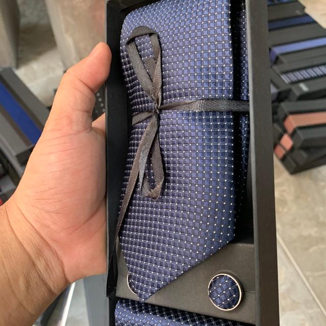 Hộp quà tặng gồm 1 cà vạt nam 8cm kích cỡ chuẩn 8cmx150 k. 1 hộp đựng cà vạt , 01 Khăn túi áo véc 20x20 cm , 1 cặp khuy áo măng sét cũng