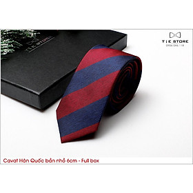 ✨Cavat Hàn Quốc bản nhỏ 6cm chuẩn công sở, chú rể - Cavat xanh kẻ đỏ cao cấp Full box