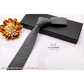 ✨Cavat nam Hàn Quốc cao cấp bản nhỏ (6cm) - Tặng kèm hộp, Màu Ghi xám kẻ
